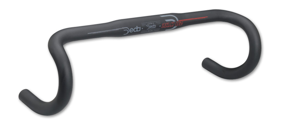 Handlebar with Deda patented RHM geometry and aero top cross section.