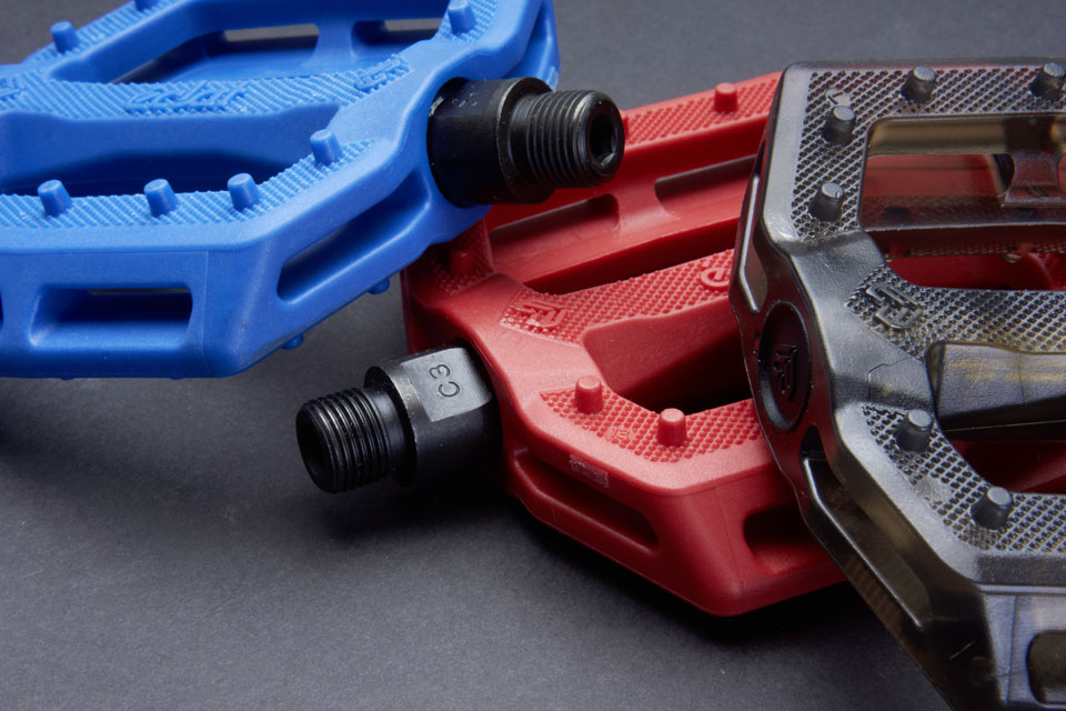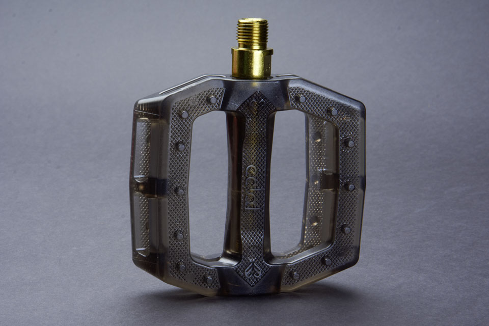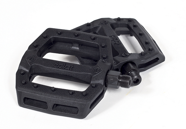 Our riders asked for a low profile, micro style pedal using the loose ball bearing system and integrating a crmo spindle, we scratched our heads and shortly after delivered the Slash nylon pedal. It’s somewhere close to perfect in size, features a lightweight design and has a nice knurled top surface.