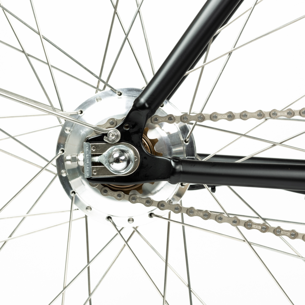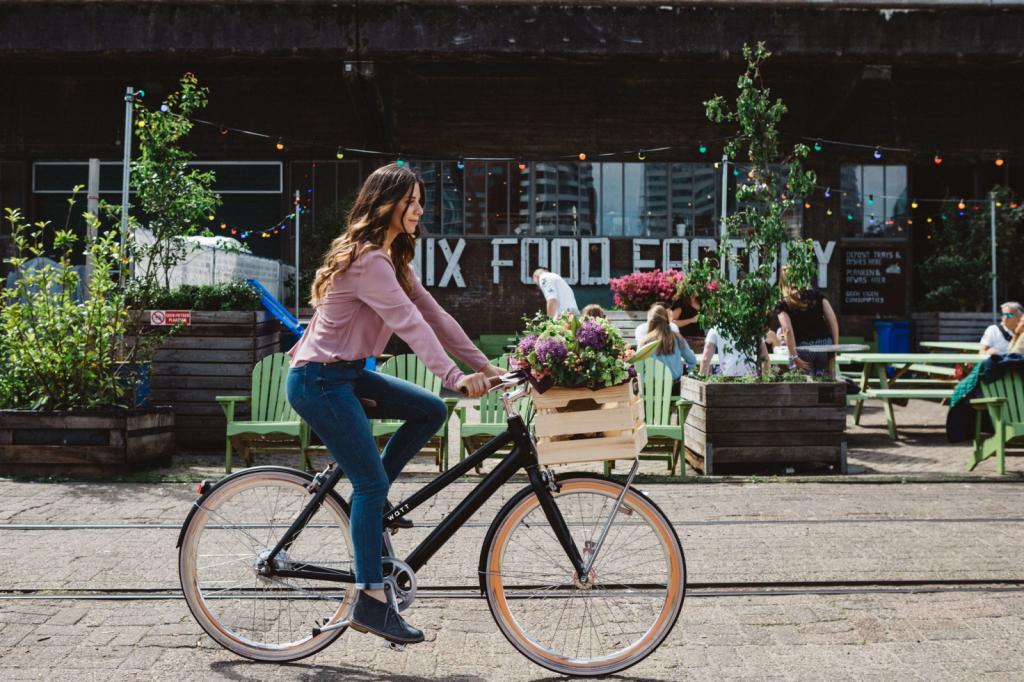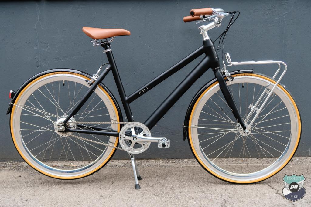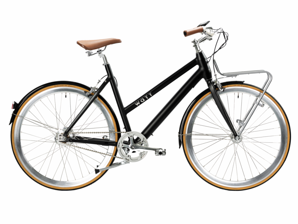 The basic edition of the ELECTRIC FEMALE is provided with: a brown saddle and brown grips, front rack with headlight, double kickstand, rear light and charger.